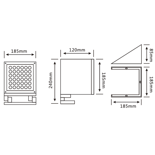 燈具尺寸: L185、W120、H240MM